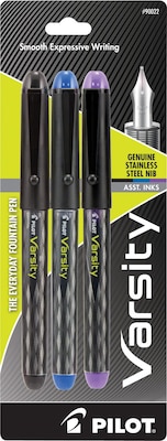 Pilot Varsity Fountain Pens, 1.0mm Nib, Assorted Ink, 3/Pack (90022)