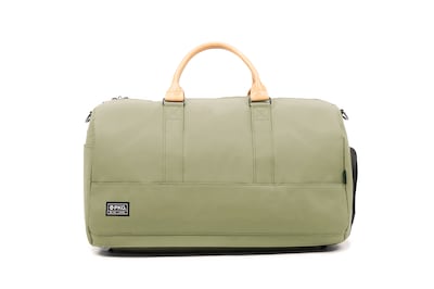 Boasting integrated organization, the dark gray and tan 42L PKG International Bishop Duffle Bag is ideal for everyday use or extended travel. The outer and inner fabric is made from recycled polyester, and the bag is water-resistant and pressure rated up to 11.5'. There's also a compartment for shoes or laundry and there is also a padded laptop compartment.