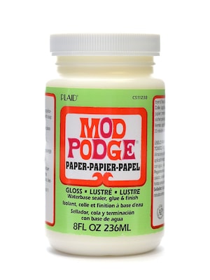 Mod Podge is the original all-in-one sealer, glue, and finish. It's excellent for decoupage and is perfect for wood, paper, fabric, and other porous surfaces. This water based formula dries clear and holds tight. Mod Podge- is non-toxic and cleans up with just soap and water, so it's great for kids. It protects acrylic paints, stains, fabric, and more.Available in gloss, matte, satin, and sparkle finishes. Sand between coats for an ultra-smooth finish. Outdoor Mod Podge--seals and protects wood, terra cotta, slate, and tin items that will be outdoors. Fabric Mod Podge--apply paper or fabric swatches to wearables, totes, banners, and more. An exciting new way to embellish your clothes and your home. Paper Mod Podge--acid free water based sealer, glue and finish. Available in matte or gloss finish specifically for all paper projects. Glow-In-The-Dark Mod Podge-waterbased and non-toxic. Use this to create a glow-in-the-dark effect. Dishwasher-Safe Mod Podge-waterbased and top rack dishwasher-safe, dries hard with no tack.