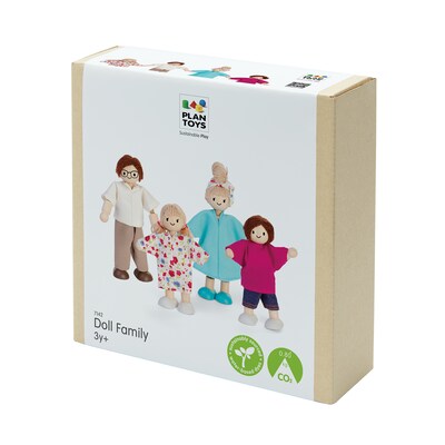 Introduce your child to inclusive and imaginative play with the PlanToys Wooden Doll Family in a light complexion with blonde and brown hair. These four beautifully crafted figures are sized to a 1:12 scale, making them the perfect fit for PlanToys dollhouses or any action figure play setting. Each doll features wooden heads and bodies with flexible wire arms and legs, allowing easy posing for endless storytelling possibilities. The diverse set includes figures of varying ages, from children to adults, and embraces a mix of pronouns two with he/him and they/them, and two with she/her and they/them, supporting inclusive play experiences. Made sustainably in Thailand using chemical-free rubberwood, formaldehyde-free glue, organic pigments, and water-based dyes, this set is both eco-friendly and safe for children.