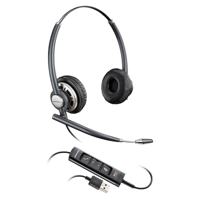 The Plantronics® EncorePro 700 Series HW725 USB stereo corded over-the-head headset in black, has unique boom design for all-day comfort, durability and reliability. It has built-in call control because every call matters. The headset comes with boom microphone that eliminates the background noise, which helps you to focus on the call.