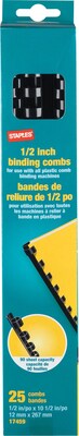 Staples® 3/4" Plastic Binding Spine Comb, 150 Sheet Capacity, Black, 25/Pack (17460/ST17460)