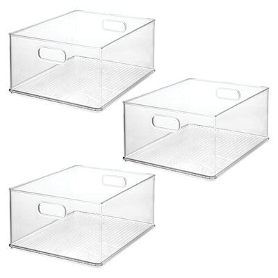 Create a system of order with this sleek, clear plastic bin that organizes school supplies, office essentials, or anything else that needs to be collected in one spot. Its transparent construction offers unobstructed views of your belongings, and its open-top design allows for easy accessibility, simplifying item location and retrieval. This iDesign Storage Bin features comfortable carry handles and stacks attractively for a smarter desk setup, creating your ideal workstation.
