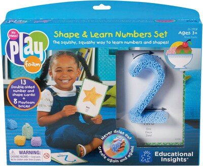 - With 8 colorful Playfoam bricks and 13 double-sided pracitce cards, kids can form numbers and create cool new shapes to help them learn