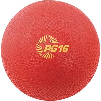 16" playground ball has red color and can be used for kickball and a variety of other playground games.
