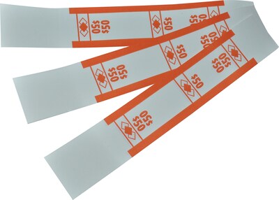 CONTROLTEK $50 Currency Strap, White/Orange, 1000/Pack (560116)
