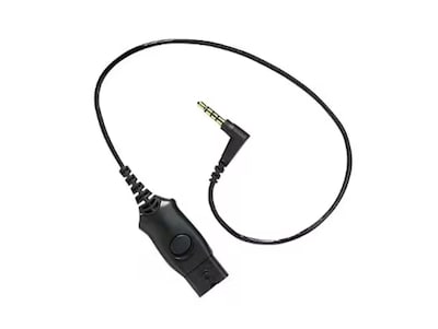 - Coiled in design, offering flexibility and reduced tangling, with a 3.5mm right-angle connector on one end and a Poly Quick Disconnect on the other.