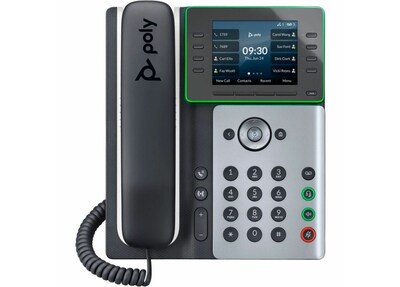 The Poly Edge E300 (HP 8F3H1AA) is a sleek, feature-rich business-grade VoIP desk phone crafted for modern hybrid offices. It sports a sharp 3.5" IPS color display to manage up to 32 lines, along with intuitive touchscreen navigation, WebKit browser, and accessibility tools like text-to-speech. Built-in HD speakers with Poly's renowned noise reduction ensure clear audio, while NFC pairing, USB-C connectivity, and support for a variety of headsets keep workflows smooth. Dual Gigabit Ethernet ports offer PoE power and LAN pass-through. The device also features antimicrobial Microban treatment for hygiene, TAA compliance, and a choice of desktop or wall-mount setups. With Energy Star certification and a robust warranty, it blends performance, flexibility, and cleanliness in a polished, ergonomic design.