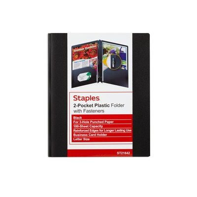 Staples 2-Pocket Matte Plastic Presentation Folder with Fasteners, Black (ST21642-CC)