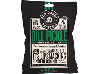 The Pop Daddy Dill Pickle pretzels combine tangy vinegar with real dill seasonings. These are a perfect tag-along for any event where snacking is a high priority. And if you are in the mood to continue your Dill Pickle adventures, Pop Daddy also carries Dill Pickle popcorn as well.