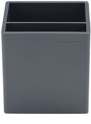 Bring some color to your workspace with this pen cup. Two compartments provide more options for organizing your pens, pencils and other writing utensils. This pen cup's lacquer-like finish coordinates perfectly with accessories from the same desktop collection. Bring back a sense of order to your messy workspace with this Poppin dark gray pen cup, which is perfect for decluttering your desk.