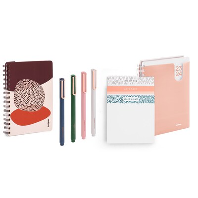 18-month medium pocket book planner for 2023-2024, Elements spiral notebook, three Elements Dream Big writing pads, and four fine liner pens