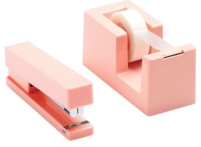 This kitted set of colorful tape dispenser and stapler makes the perfect pair.