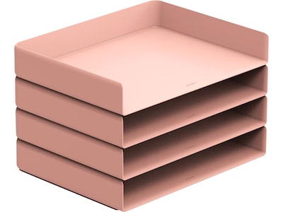 Poppin Stackable Front Loading Letter Tray, Letter Size, Pink, 4/Pack (108517)