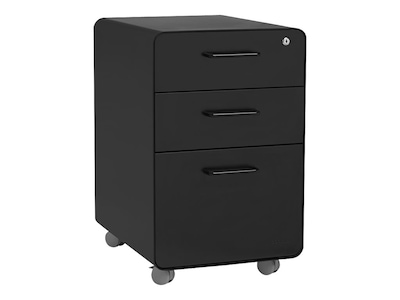 Poppin Stow 3-Drawer Mobile Vertical File Cabinet, Letter/Legal Size, Lockable, 24"H x 15.75"W x 20"D, Black (101390)