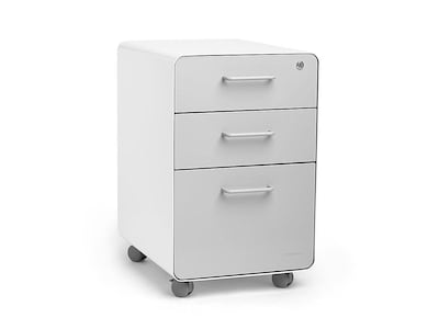 Poppin Stow 3-Drawer Mobile Vertical File Cabinet, Letter/Legal Size, Lockable, 24"H x 15.75"W x 20"D, White/Light Gray (101251)
