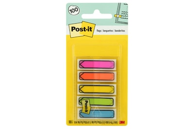 Post-it Arrow Flags, 0.5" Wide, Assorted Colors, 100 Flags/Pack (684-ARR1)