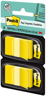 Post-it® Flags, Yellow, 1 in. Wide, 50/Dispenser, 2 Dispensers/Pack