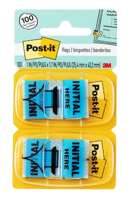 Post-it 'Initial Here' Message Flags, 1" Wide, Blue, 100 Flags/Pack (680-IH2)