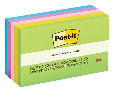 Post-it Notes stick securely and remove cleanly, featuring a unique adhesive designed for use on paper. America’s #1 favorite sticky note, the 3 in. x 5 in. size is great for short lists, indexing, or to call out important information. Leave notes in calendars or planners. Step into a lush garden of color to help your ideas bloom with the Floral Fantasy collection. Post-it Notes are recyclable, and the paper in Post-it Notes is sourced from certified, renewable and responsibly managed forests. 5 Pads/Pack, 100 Sheets/Pad