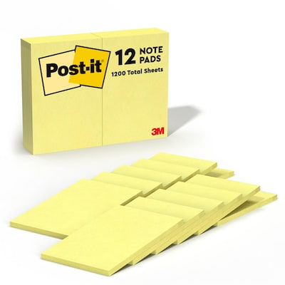 Post-it® Notes stick securely and remove cleanly, featuring a unique adhesive designed for use on paper. Use the 4 in x 6 in size to create lists, or to call out important information. Leave notes in calendars or planners. Canary Yellow color helps your note break through. Post-it® Notes are recyclable, and the paper is sourced from certified, renewable and responsibly managed forests. 12 Pads/Pack, 100 Sheets/Pad.