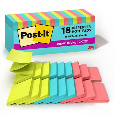 Free Post-It Note Dispenser ($13 value) w/Purchase, 3" x 3" Pop Up Super Sticky Notes, 90 Sheets/Pad, 18 Pads/Pack, Supernova