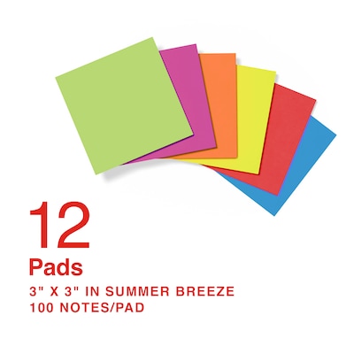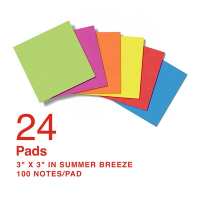 Staples Ultra Sticky Notes, 3" x 3", Summer Breeze Collection, 100 Sheets/Pad, 24 Pads/Pack (ST62882)