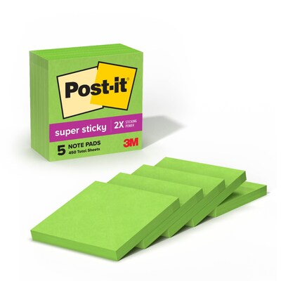 Post-it Super Sticky Notes, Limeade, 3" x 3", 5 Pads/Pack (654-5SSLE)