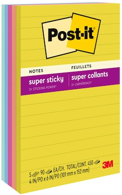 Post-it Super Sticky Notes, 4" x 6", Summer Joy Collection, Lined, 90 Sheet/Pad, 5 Pads/Pack (660-5SSJOY)