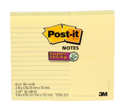 Post-it® Super Sticky Notes, Combo Pack, Canary Yellow, 90 Sheets/Pad, 9 Pads/Pack (4633-9SSCY)
