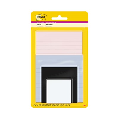 Post-it Super Sticky Notes Combo Pack, Simply Serene Collection, 45 Sheet/Pad, 4 Pads/Pack (4622-SSNE)