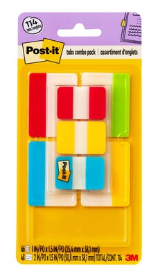 Post-it® Tabs Value Pack, 1" Wide and 2" Wide, Assorted Colors, 114 Tabs/Pack (686-VAD2)