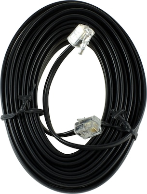 Connect phones, modems and fax machines to wall jacks with this black phone cord. The modular jacks on each end are compatible with any brand. This Power Gear phone cord is 25 feet long, so it can reach devices that aren't near the wall jack.