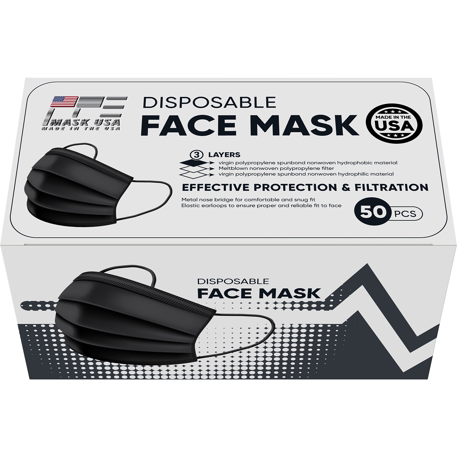 PPE Mask USA Disposable Surgical Cloth Face Mask, One Size, Black, 50/Box, 30 Boxes/Pack (TBN203204)