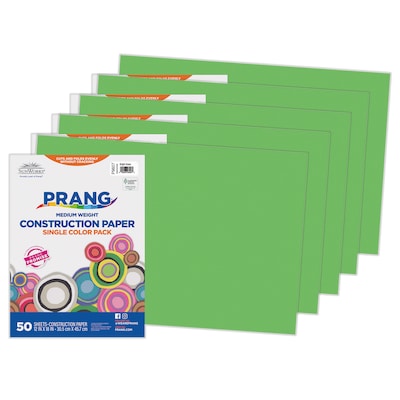 Prang 12" x 18" Construction Paper, Bright Green, 50 Sheets/Pack, 5 Packs/Bundle (PAC9607-5)