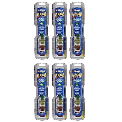 Prang® Semi-Moist Washable Watercolors feature the tuned palette of brilliant colors and intense pigments that have made Prang the watercolors most preferred by teachers nationwide. These washable watercolors easily wash off clothes and skin with soap and water. AP certified non-toxic. Conforms to ASTM standards. Each set includes 8 glitter colors and a No.9 brush in a plastic case. Sold as 6 sets.