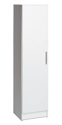 Prepac™ Elite 16" broom cabinet has 6-way hinges can be mounted to open left or right and is a tall closet for convenient and customizable storage. Cabinet features MDF body with white laminate and solid metal hardware for added durability.