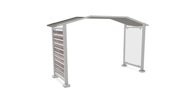 Preserve Outdoor Collaboration Glassboard, Charcoal Grey Awning, Walnut Decking, 104'' H x 62'' W x 178'' D (PSV3FGSSILGRYWL)
