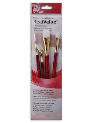 - 9120 Set contains four short handled, synthetic white taklon brushes: one Round (size 6), one Fan (size 2), one Wash (5/8 in.), and one Angle (3/8 in.)