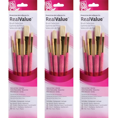Princeton Artist Co. proudly presents the RealValue paintbrush collection—a curated series of meticulously selected brush sets that cater to every artistic need. Whether you prefer short-handle or long-handle styles, natural, synthetic, or a blend of bristles, the RealValue collection offers an unparalleled range of shapes and sizes. Designed to meet the demands of artists across all mediums—acrylic, watercolor, tempera, and oil—these brushes deliver exceptional mixed media performance at an incredible value. With RealValue, you'll find the perfect brush set to elevate your craft, whether you're just beginning or are a seasoned professional. Each set includes 4 brushes. Sold as 3 sets for a total of 12 brushes.