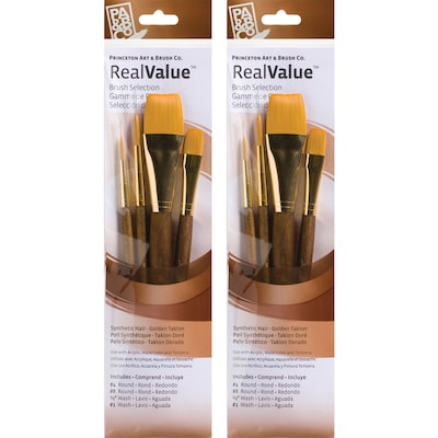 Princeton Artist Co. proudly presents the RealValue paintbrush collection—a curated series of meticulously selected brush sets that cater to every artistic need. Whether you prefer short-handle or long-handle styles, natural, synthetic, or a blend of bristles, the RealValue collection offers an unparalleled range of shapes and sizes. Designed to meet the demands of artists across all mediums—acrylic, watercolor, tempera, and oil—these brushes deliver exceptional mixed media performance at an incredible value. With RealValue, you'll find the perfect brush set to elevate your craft, whether you're just beginning or are a seasoned professional. Each set includes 4 brushes. Sold as 2 sets for a total of 8 brushes.