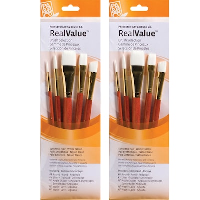 Princeton Artist Co. proudly presents the RealValue paintbrush collection—a curated series of meticulously selected brush sets that cater to every artistic need. Whether you prefer short-handle or long-handle styles, natural, synthetic, or a blend of bristles, the RealValue collection offers an unparalleled range of shapes and sizes. Designed to meet the demands of artists across all mediums—acrylic, watercolor, tempera, and oil—these brushes deliver exceptional mixed media performance at an incredible value. With RealValue, you'll find the perfect brush set to elevate your craft, whether you're just beginning or are a seasoned professional. Each set includes 5 brushes. Sold as 2 sets for a total of 10 brushes.