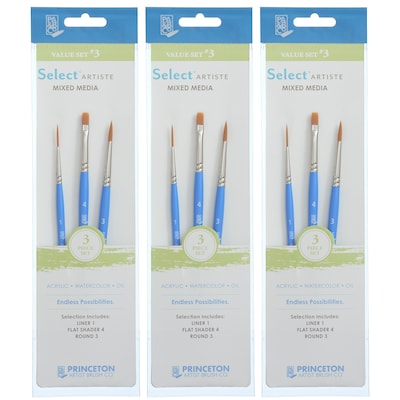 Princeton Select Artiste Mixed Media Synthetic Variety Brush Set No. 3, 3/Set, 3 Sets/Bundle (PBXP3750SET103-3)