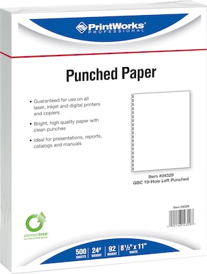 Printworks® Professional 24 lbs. 19 Hole Punch GBC Paper is perfect for hospitals, universities, law firms, insurance companies and nearly every type of business.