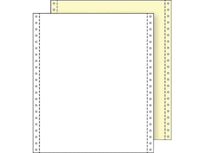 - Two-part blank carbonless paper with side perforation in white and canary colors