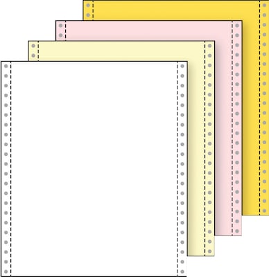 Printworks Professional 4 part 13 lbs continuous computer paper is an essential item that businesses rely on every day and comes in white/canary/pink/gold side perforated format with carton weight of 28 lbs.
