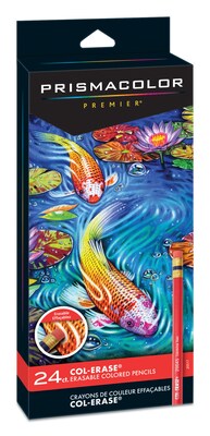 Illustrate presentations with vibrant charts and graphs by using these colored medium-point pencils. Equipped with built-in erasers, these wood barrel pencils feature durable leads that resist cracks and correct cleanly and easily. These Prismacolor Premier Col-Erase pencils come in pack of 24 distinct colors and are made with rich premium pigments that lay down smoothly and evenly for brilliant, high-quality results with every project.