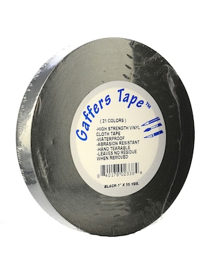 Pro-Gaff has a high performance adhesive system and is highly conformable to irregular surfaces. Pro-Gaff is waterproof, abrasion resistant, and has a smooth, contolled unwind, and is hand tearable. Conforms to irregular surfaces. Used for holding down wire and carpet, gaffing lights, marking boxes, splicing floors, bundling wires. Black.