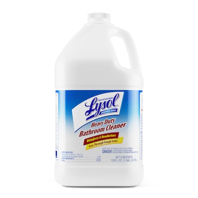 Arm your cleaning staff with the cleaning action of Lysol® Professional Disinfectant Heavy Duty Bathroom Cleaner. Kills 99.9% of viruses and bacteria (including Rotavirus WA) when used as directed on hard, non-porous surfaces. Create dazzling commercial restrooms with a product that works on sinks, toilet bowls, shower stalls, and glazed tile. Maintain cleaning protocols in high-volume facilities with a concentrated formula that’s easy to dilute. Reduce how often you have to restock janitorial supplies with the concentrated formula.