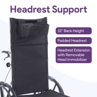 ProHeal Chariot Reclining 16" Wheelchair, Headrest Support w/ Removable Desk Arms, 300 lb. Capacity, Black (PH-WCRC16DAELR)